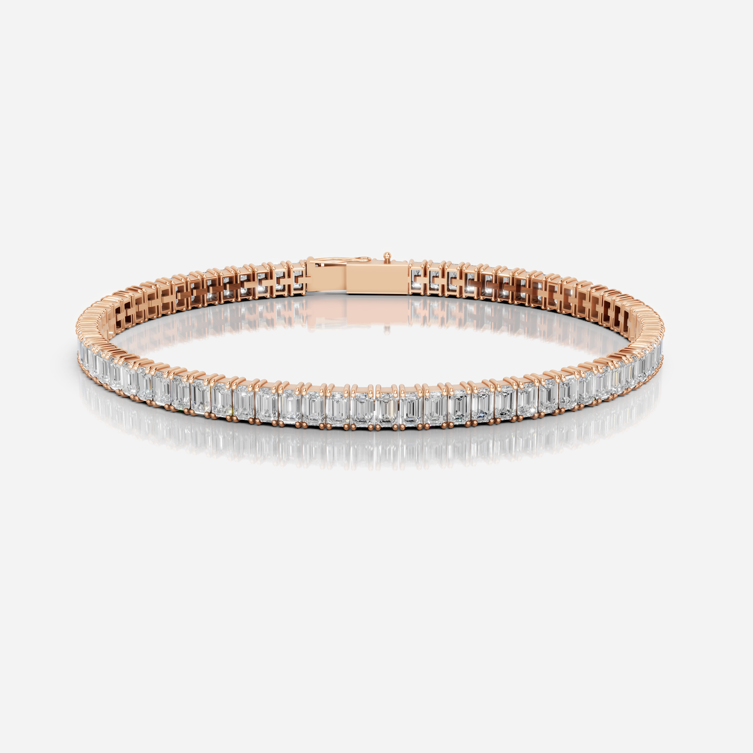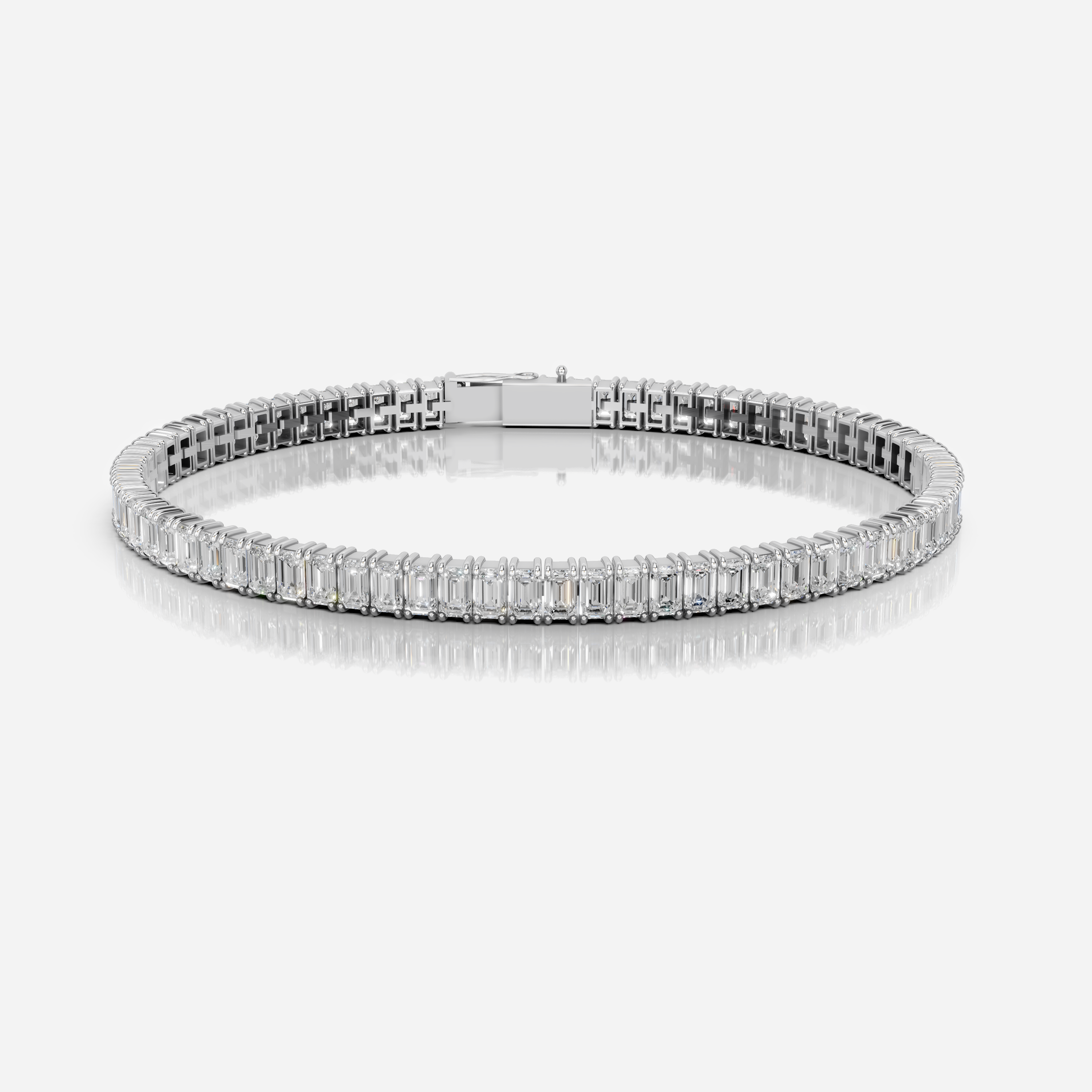 Our Emerald Tennis Bracelet reimagines a classic with striking originality – featuring a continuous line of vertically set emerald-cut diamonds, each precisely arranged in a sleek prong setting. The elongated silhouette of every stone flows seamlessly around the wrist, creating a bold, architectural rhythm unlike any traditional tennis bracelet. Crafted in 18k gold, it’s a refined yet daring piece – timeless, but with a modern twist.