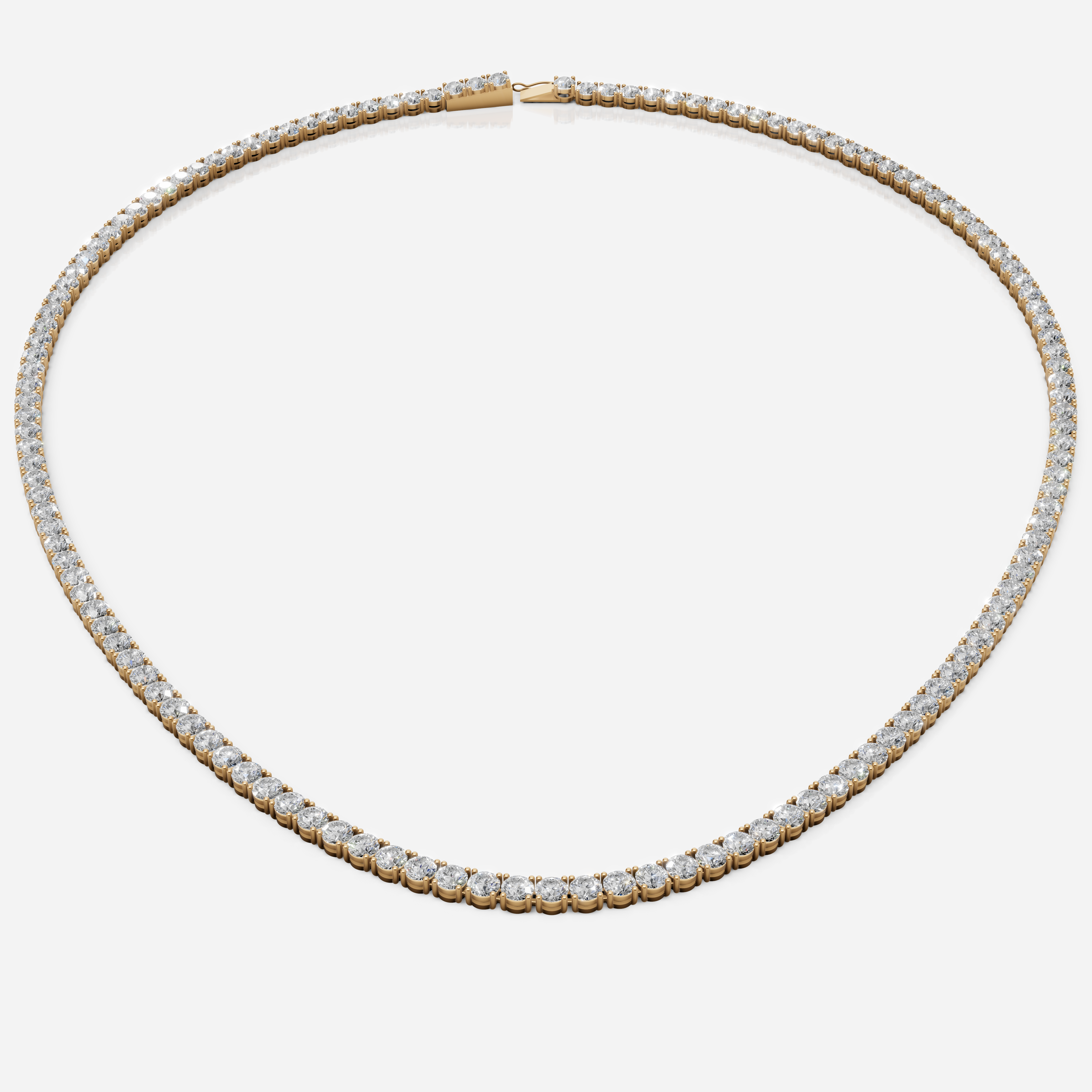 Our Classic Diamond Tennis Necklace is the embodiment of brilliance – a seamless stream of round-cut diamonds, set to move fluidly with the wearer. Crafted in solid 14k gold, each stone is hand-selected and perfectly aligned to maximize light and sparkle. Whether worn casually by day or as part of an exquisite evening ensemble, this piece adds quiet power and elegance to any look.